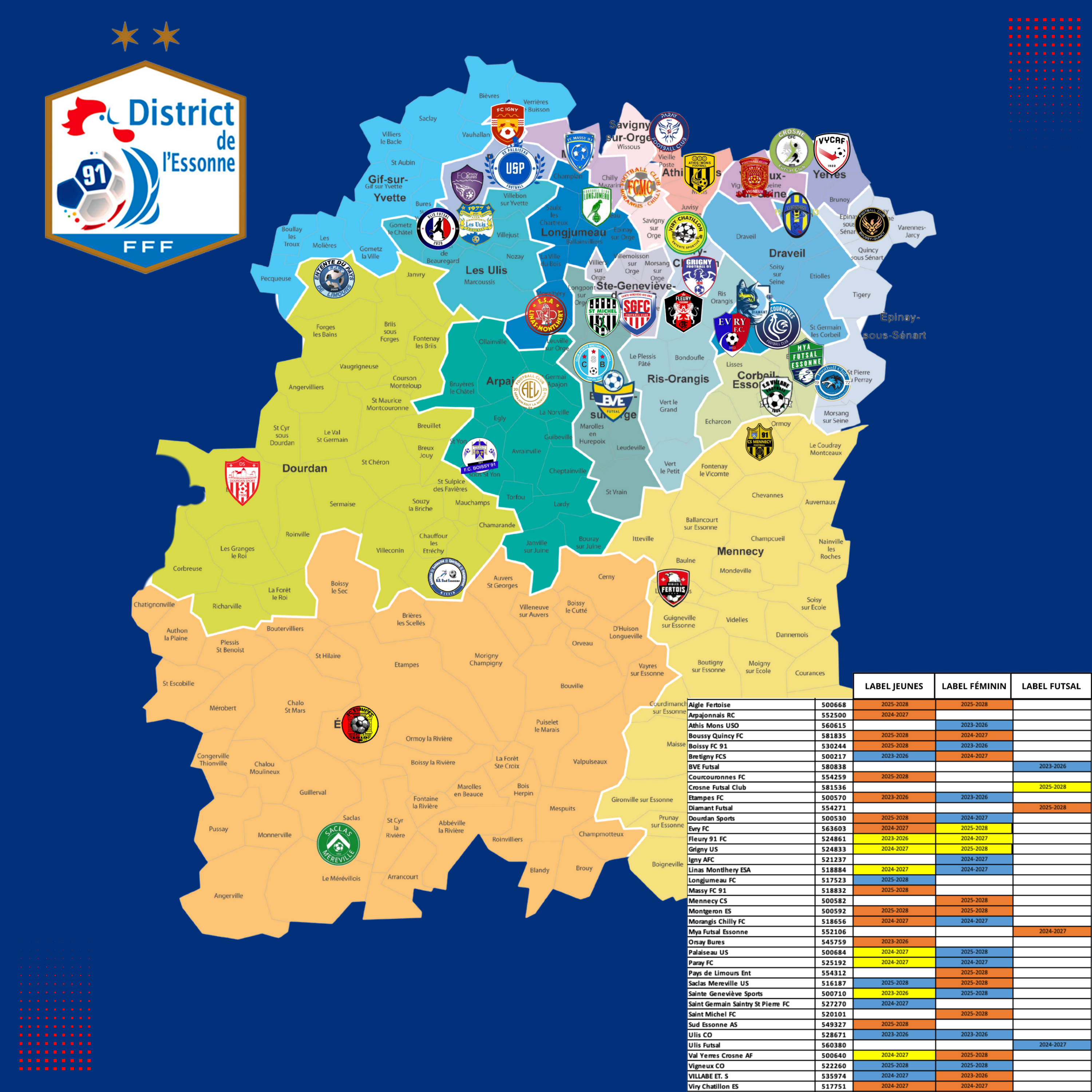 Le District de l’Essonne de Football propose deux cartographies afin de mieux identifier et valoriser les clubs engagés dans le développement des différentes pratiques sur le territoire.