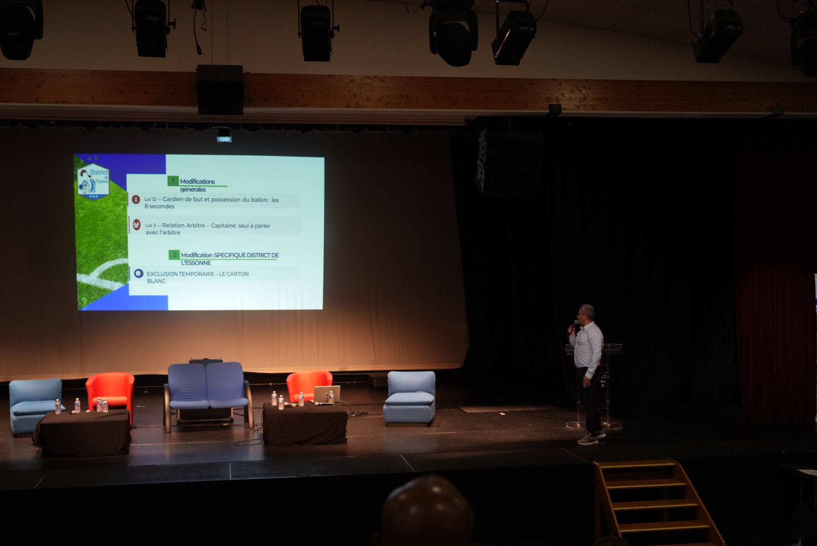 Arbitrage : Ahmed Guettoufi, représentant des arbitres, a notamment expliqué l’importance du « carton blanc » et des nouvelles lois du jeu.
