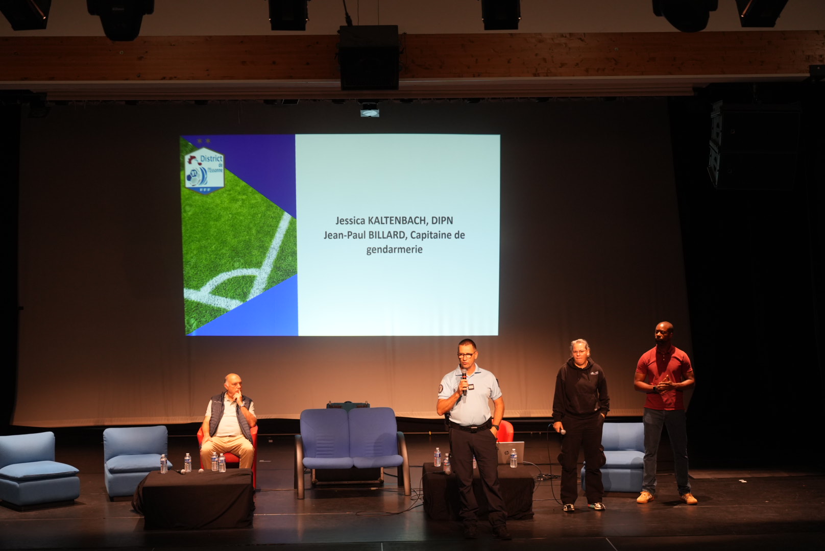 Jessica Kaltenbach direction interdépartementale de la police nationale (DIPN) et Jean-Paul Billard (capitaine de gendarmerie) deux intervenants ont souligné le rôle central des clubs dans la gestion des violences et comportements inadaptés dans le département, et rappelé que leur implication est essentielle pour prévenir et traiter ces situations.