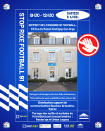Le District de lâEssonne de Football lance STOP RIXE FOOTBALL 91, un dispositif dĂ©diĂ© Ă la prĂ©vention des violences et Ă la promotion du respect sur et autour des terrains.